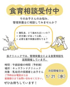 食育相談次回は1/21(水)に開催します!!