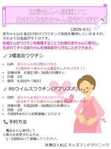 3種混合ワクチン・RSウイルスワクチン接種開始しました